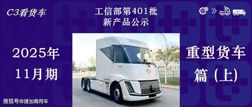 11月10日傍晚,工信部发布今年11月期第401批新品公示。经识别,本批包括39款牵引类(整车口径)和75款重卡类(底盘口径)新品,折算为“重型货车”合计114款新品,环比增长31.0%而继续刷新2025年度记录,同比骤增1.28倍也体现出异于以往的特征。新来者宇通商用共申报1款牵引类和31款重卡类,独家占比接近三成;若按其2022年以来43个月期、平均4.12款新品的表现折算,本月期的常规水平应在33+44+5=87款左右,整体水平企稳而未有太动——以上现象在上月期已有体现,不做赘述。在近两月“宇商狂飙”的带领下,近半年行业均值已水涨船高至79.2款,同时也可看出其他车企同样处于研发旺季期。另,本月期重复申报的“特殊车型”均为宇通商用上月期申报的8×4商鼎款自卸类新品,即ZKH3312P6BEV7/13KHJ两款底盘车。