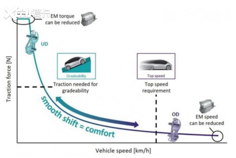 转换至电动车层面本质相同:单速变速箱的电动车尽管也能跑到120km/h以上的极速,但能预见的是,电机转速已然达到10000rpm以上。这时,不仅对电池的耗电量很不友好,且车辆的NVH等方面的表现也可想而知!